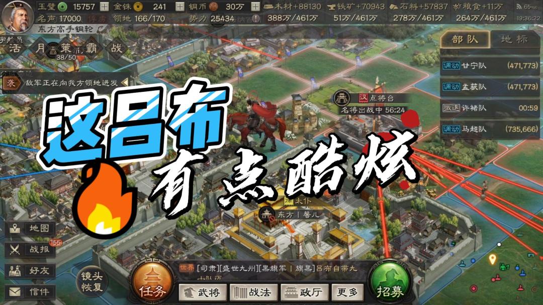 三国志战略版:吕布出来了,这一个得打十个吧,相当酷炫。