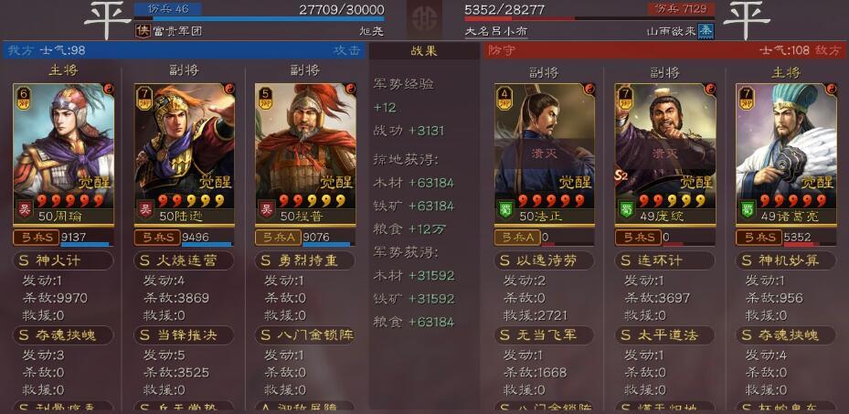 三国志战略版新T0神火盾一穿7,周瑜普攻7094输出,猛的!