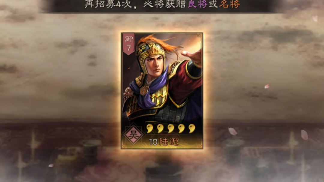 首先,非常感谢策划今天又给了陆逊,寻访也出了几个紫。又是神清气爽的一天,同时希望策划能给个诸葛亮,第3赛季都马上要结束了,一直想个诸葛,一直还没实现。有那么点小小遗憾!