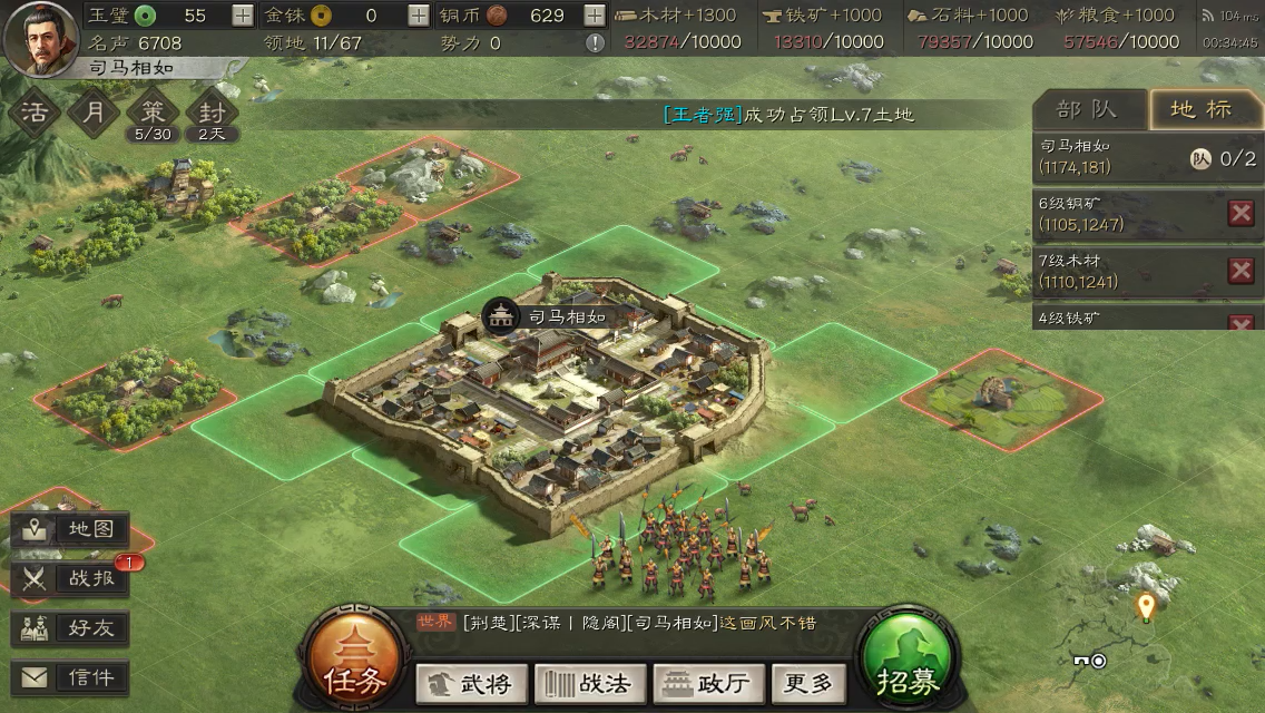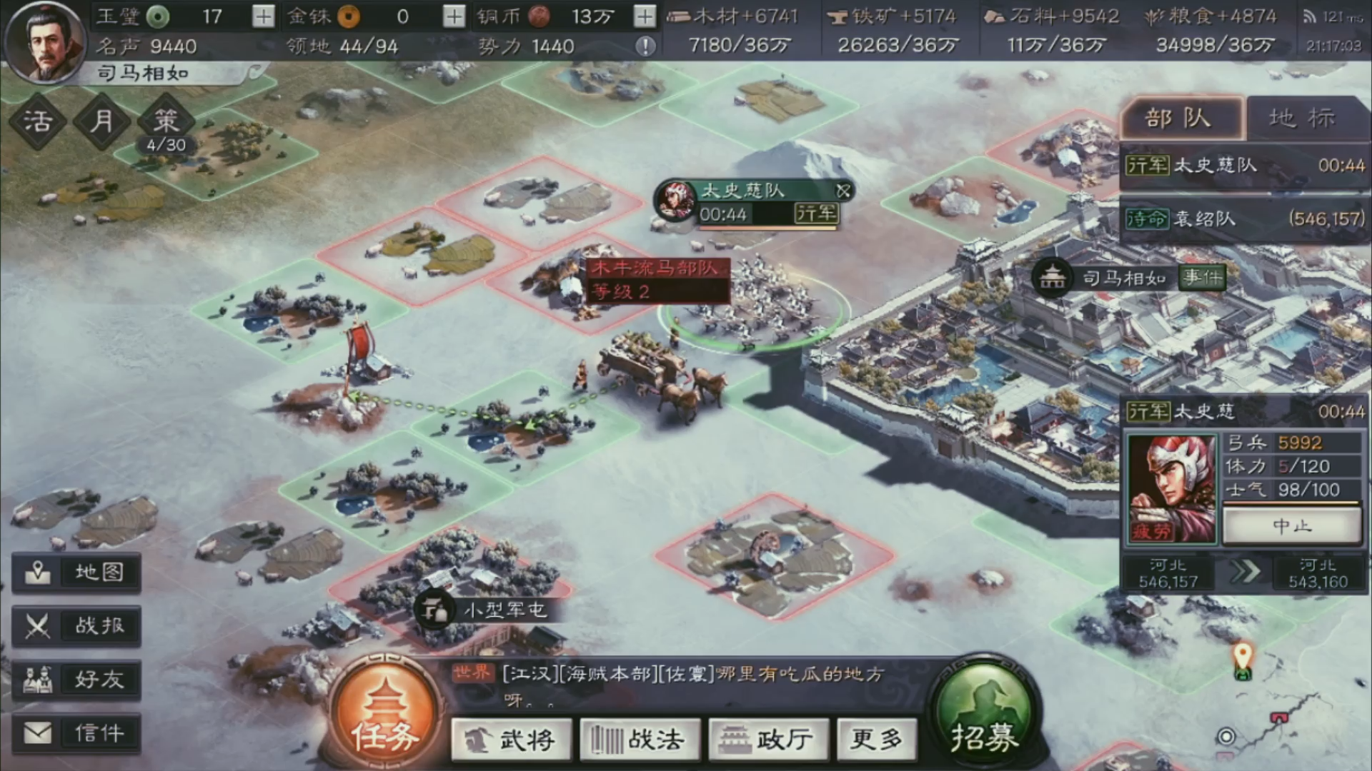 本次行军目的: ①截获木牛牛马资源 ②攻占四级资源地
