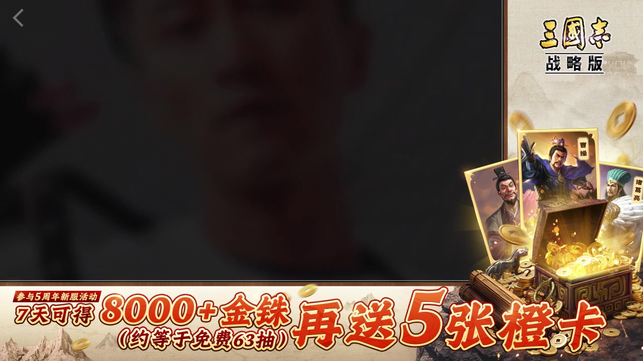 五周年全民史诗级福利 五载心愿阁:9月14日至26日期间,主公可在活动中,选择心仪的名将进行抽取(全S1赛季五星名将),最终必得一位名将!无论是三皇或是诸葛亮、许攸,都有机会直接获取。 薪火传承:凡9月1日前流失、势力值曾达到3000的主公,前往新服征战,可根据历史投入获得2000至最高50000金铢的回馈!助力主公再次开启更精彩的三国之旅。 万瓶茅台:通过参与“每日送茅台”、“龙虎争霸赛“、“五