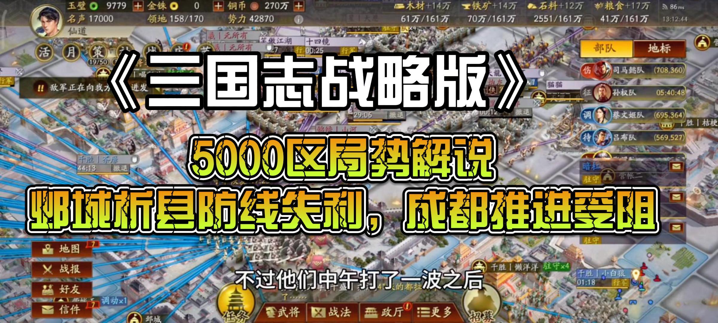 三国志战略版:5000区局势解说:邺城析县防线失利,成都推进受阻