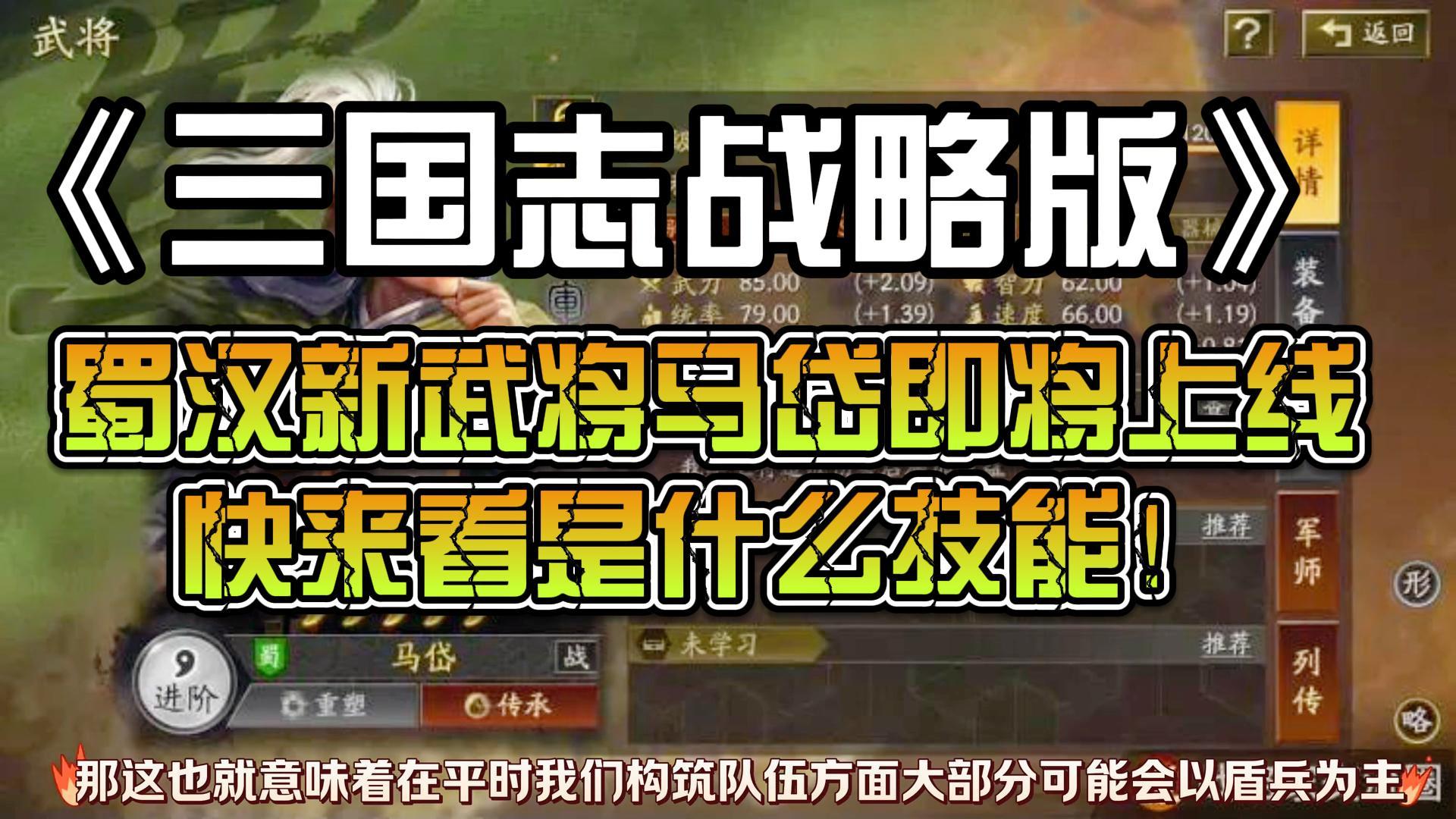 三国志战略版:蜀汉新武将马岱即将上线,快来看是什么技能!