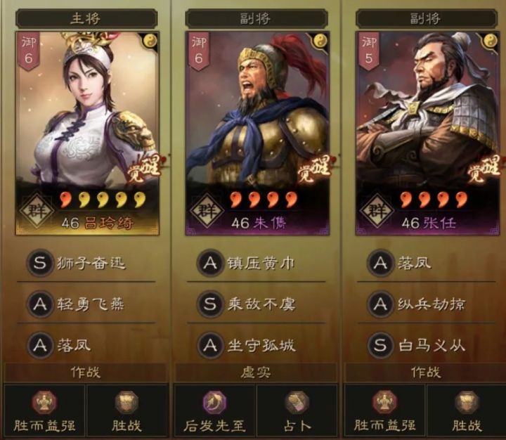 PK赛季“天下争锋”开始以来,战场上的队伍可谓是百花齐放,其中最为抢眼的莫过于孙尚香、凌统、周泰三人组成的吴骑,陆逊、诸葛亮、左慈组成的三势弓。为了克制这两只强力的队伍,玩家们可谓绞尽脑汁。今天,给大家带来这支性价比极高,可与主流队伍一战的吕玲绮控制流群弓。队伍配置战法解析吕玲绮:狮子奋迅+轻勇飞燕+落凤战法备选:为了与张任自带落凤形成双落凤的强力控制,同时也依赖落凤的高额伤害打出爆发,一
