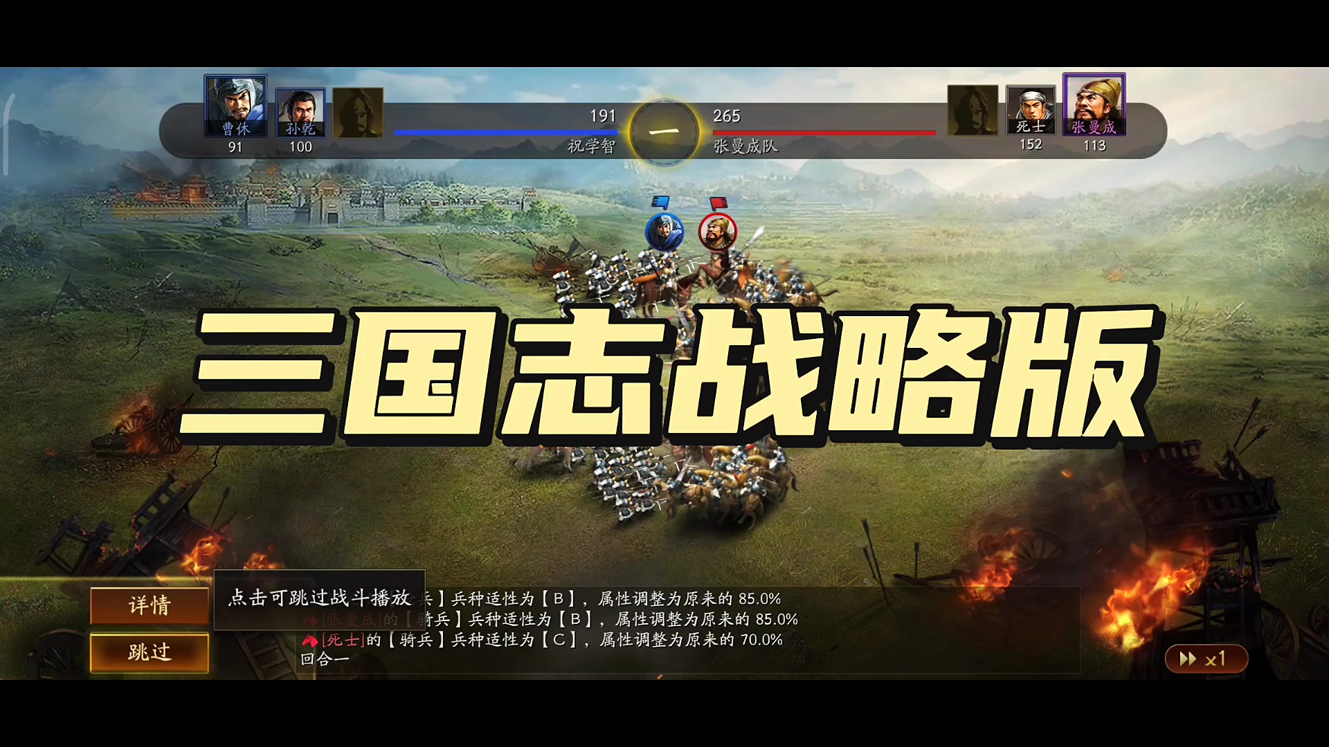 《三国志战略版》是一款以中国历史上著名的三国时期为背景的策略游戏。玩家将扮演一位主公,通过招募武将、发展城池、结交盟友,最终实现一统天下的目标。游戏融合了战争、外交、政治等多种元素,玩家需巧妙运用策略与战术,才能在战乱纷争的三国时代立足。独特的武将养成系统,丰富的兵种克制关系,让游戏更具深度和挑战性。#三国志战略版年度大版本创作征集令#游戏推荐#游戏资讯#游戏攻略