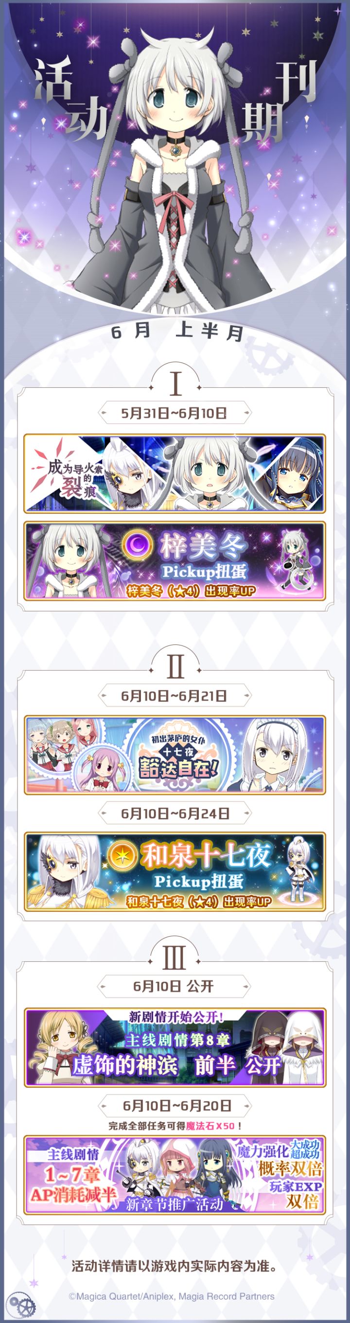 《魔法纪录 魔法少女小圆外传》将于6月1日进行更新维护,维护完成后将会开启以下活动!
