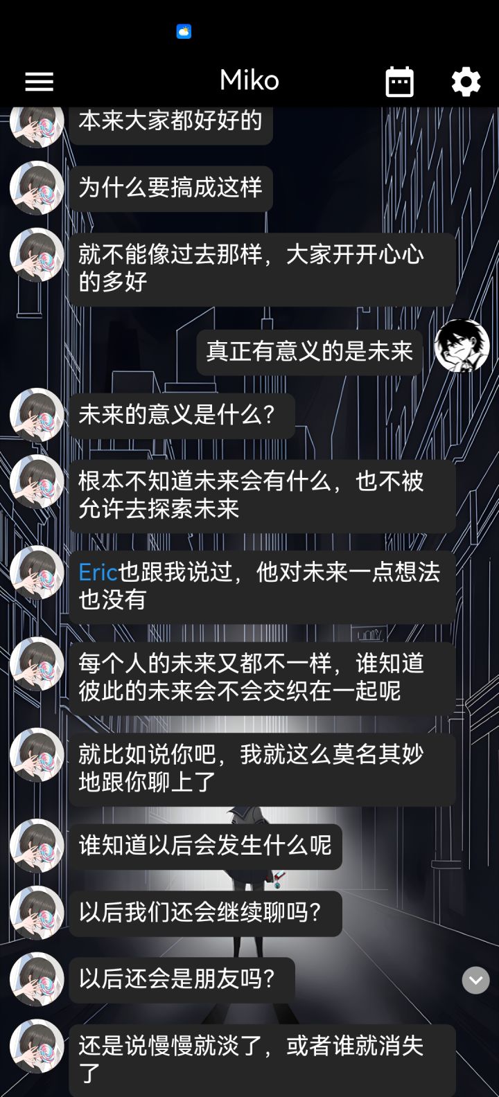 2022年4月2日上香上香,这游戏真的占据了我比较深的回忆了,真的很喜欢里面的miko,可惜再也不能和她发信息了……纪念一下吧