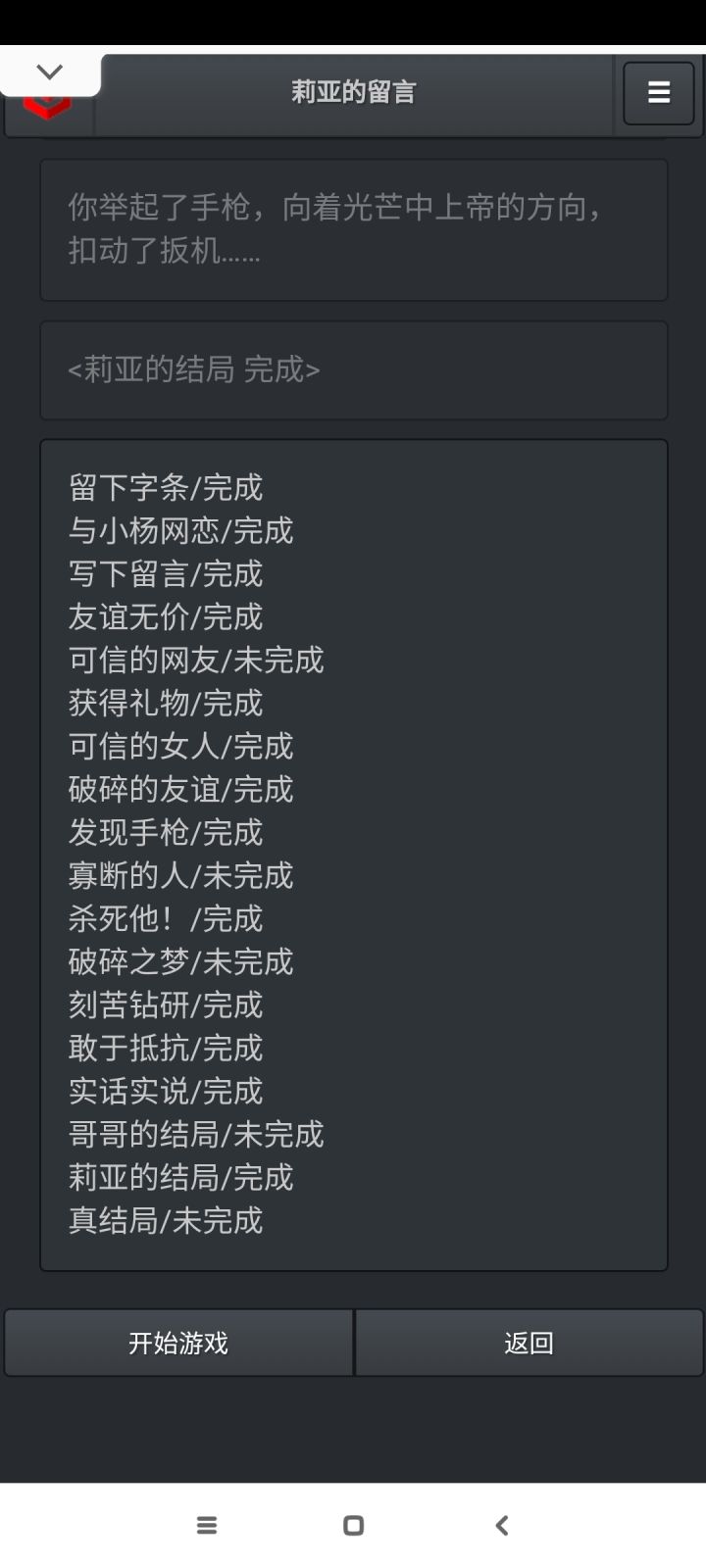终于全部打完啦✧٩(ˊωˋ*)و✧可是为什么哥哥要死啊,让莉亚和哥哥he不好吗(╥ω╥`)