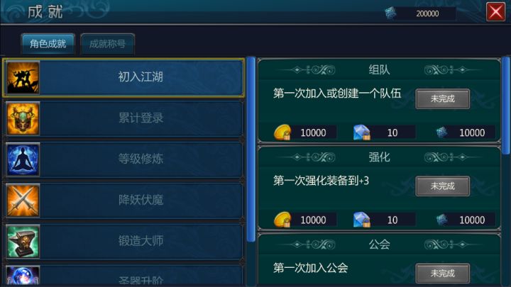 探索神域大陆,成就系统必不可少。点击主界面的成就图标,即可进入成就系统。通过击杀怪物、通关副本、升级装备、参与活动等,均可得到大量的成就积分。完成成就可获得积分,用来升级成就称号。获得生命、攻击和BOSS减伤属性。