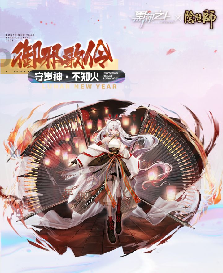 扬袖踏歌,执扇起舞。原本漆黑的都市,在夜歌星火的蔓延下,渐渐灿烂绯红。「守岁神▪不知火」全新时装御邪歌伶即将上架!2021年1月26日-2021年2月16日,接触者可通过式神精选池进行抽取。更多情报请接触者关注憨憨后续播报~游戏最新资讯、游戏福利礼包、游戏问题和建议反馈都在这里!官方交流群:553063013官方网站:官方微博:@黑潮之上官方微信:heichaozhishang