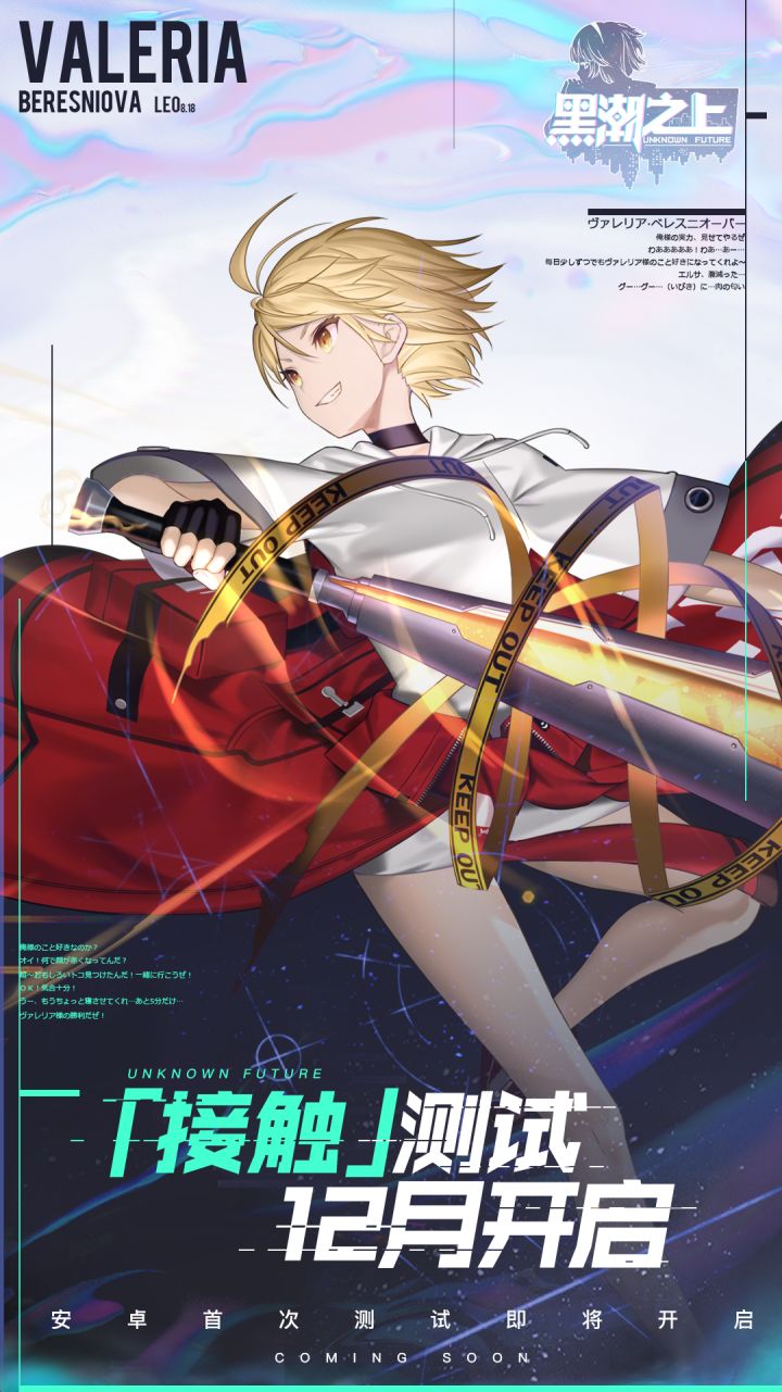 黑潮来袭,命运重启。接触者,久等了。安卓首次测试:「接触」测试将于12月中旬和大家见面。这一次,未来选择将艾尔莎传送回过去,艾尔莎和大家的命运将掌握在你手里。1.定档时间:12月中旬,接触测试将正式开启,本次测试为安卓首次删档不计费测试,IOS玩家请耐心等待后续测试。2.测试新增:地区特勤玩法、日常副本迭代、通缉令玩法,新主角。3.资格发放:即日起(22日起),官方微博、微信、B站、T