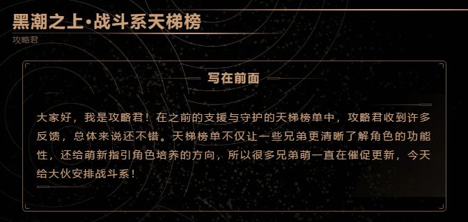 【分析向】战斗系角色天梯榜单,快来看看你的“老婆”登顶了没?