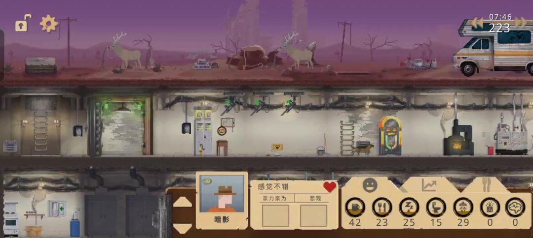 以前在外网下的玩了几年了,废话不多说直接上攻略 #庇护所 #庇护所攻略 一.家庭预设 两个大人:心思缜密(高感知探图) 小孩1:极富教养(高魅力广播搜交易) 小孩2:全面能手(备用人选) *特质全部选乐观(前期没水洗澡上厕所精神创伤高) 宠物:猫(减压还能抓肉性价比高) 二.开局 *最好刷一个开局进去就下雨的档,生存压力小一点 1.开局直接升级工作台到二本,做中型集水器和二本床