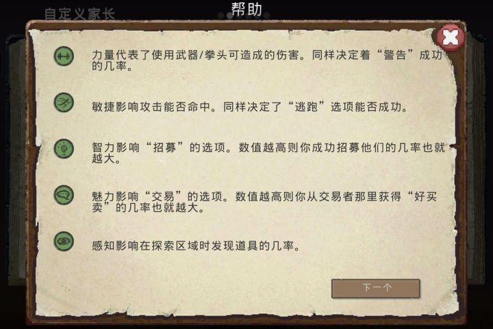 补充一下,最好的配置其实最好是一个人勇敢加懒惰,一个人懦弱加积极。这样懒惰探索足够地点就会变成积极,懦弱让勇敢的人让个人头就会也变成勇敢。双勇敢积极出去探索是相当好了。不过游戏本身一个人物只能固定一个天特性,另一个只能自己刷了。游戏后面在你修好房车之后会刷一个任务,让你准备大量的资源,然后开二周目,会多一位家人。