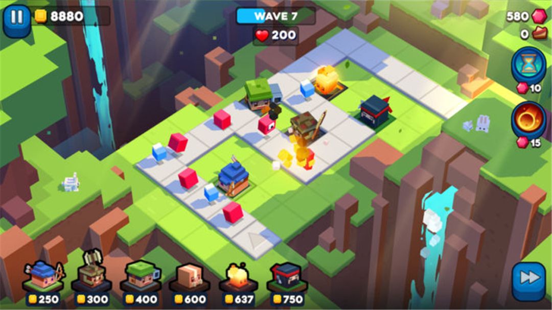 可爱画风《方块塔防》防御塔和敌人都有点方