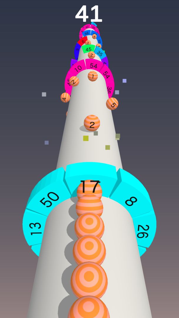 滑动手指滚动一条由彩球组成的蛇,并将天空柱子上的螺旋砖块打破。