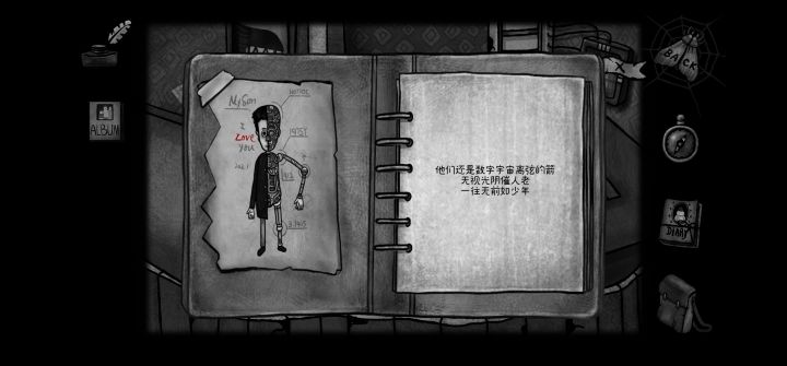 背景声代入感很强了,一开始和主角一样进入一个旧宅子,听着未知原因产生的声音,战战兢兢,看着房间里面的怪物,翻看父亲的笔记一部部了解那些怪物的喜好习惯,和被创造的过程(还有父亲即使忙着实验仍然爱着家人的心思)比起带有转跳房间功能的设计,这种角色全程出现在画面里走动的设计更让人置身其中。让玩家跟着角色一起探索,回忆,了解关于这座宅子的故事。非常喜欢这一点。