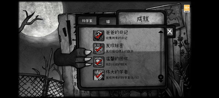 背景声代入感很强了,一开始和主角一样进入一个旧宅子,听着未知原因产生的声音,战战兢兢,看着房间里面的怪物,翻看父亲的笔记一部部了解那些怪物的喜好习惯,和被创造的过程(还有父亲即使忙着实验仍然爱着家人的心思)比起带有转跳房间功能的设计,这种角色全程出现在画面里走动的设计更让人置身其中。让玩家跟着角色一起探索,回忆,了解关于这座宅子的故事。非常喜欢这一点。