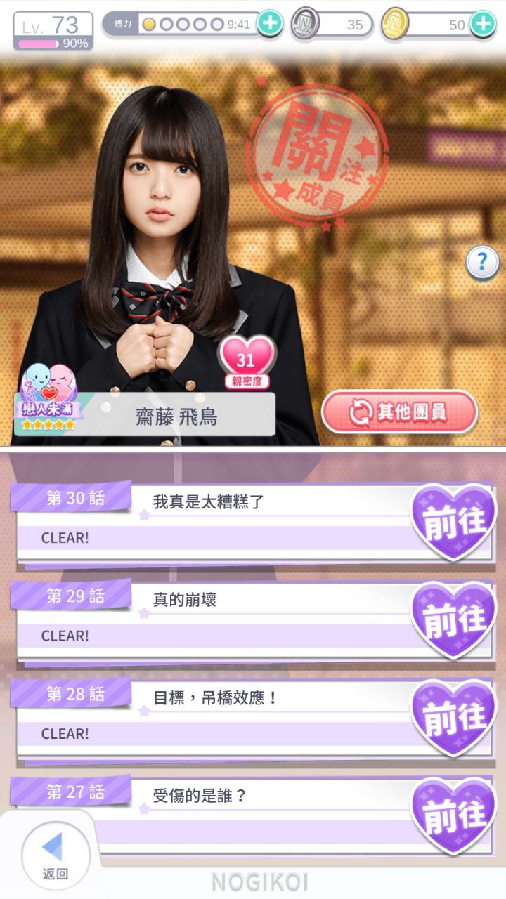 请问乃木恋团员亲密度最高是多少,怎么到了31就没了剧情