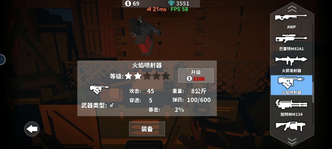①入坑的,可以只用沙鹰和 Uzi 把这两个升满级,就差不多可以打全关,就是会有那么几个打不到三星原因是因为子弹太少了还不让补充这种情况大多发生于"消灭所有敌人"或"守关48"火力不够,关后都把双倍奖励看一看,这样子不到两天就可以攒够喷火器 ②如果金币不够,可以把监狱的那个任务补给箱拿三个。多玩几遍,摸清路之后一局可以700金币,前面关卡有一个是拿两个箱子得200那个可以作为过度,关卡我觉得就这两个