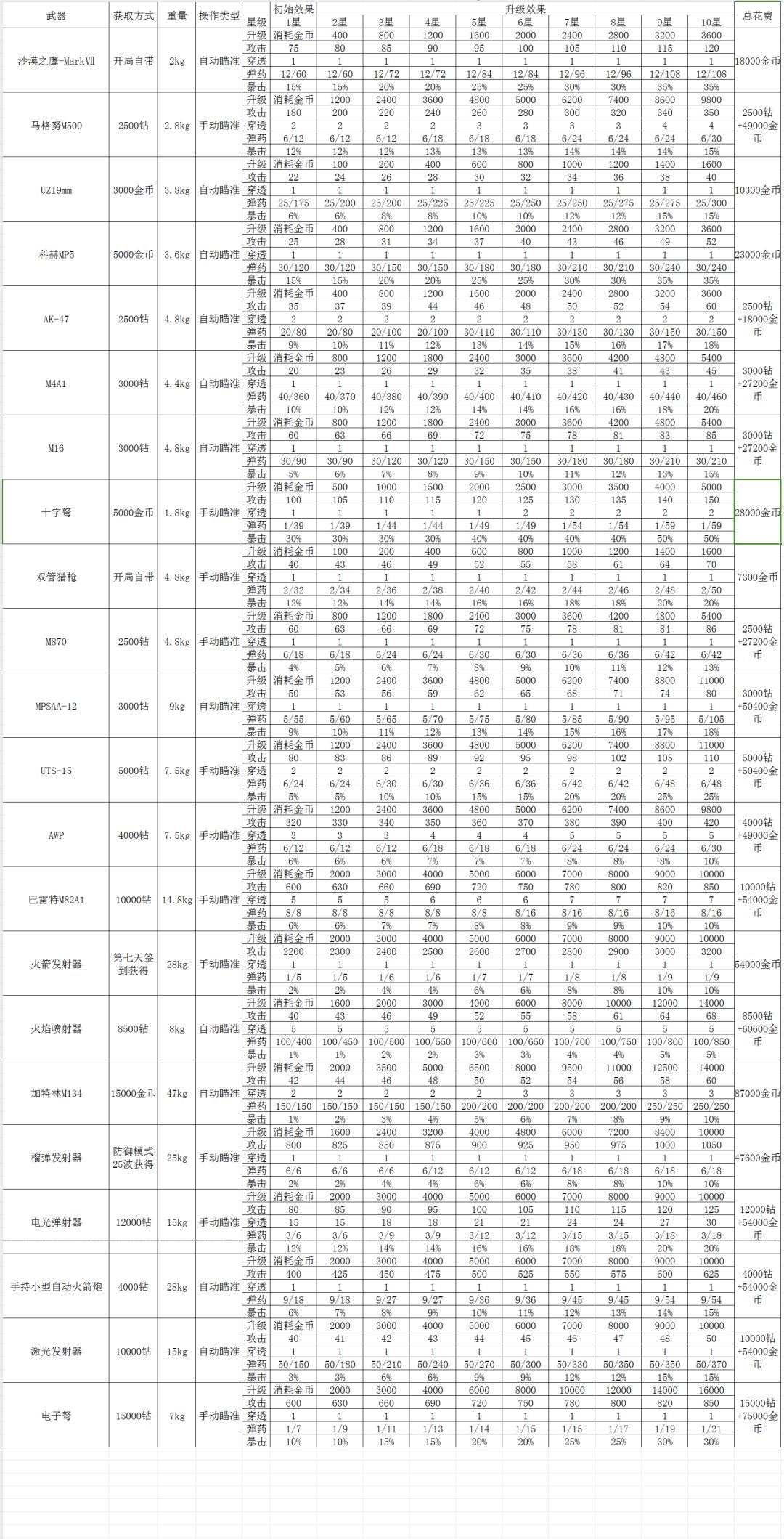 经过8天的努力,终于把所有武器和所有人物都解锁了,这些是整理的武器数据和各关卡僵尸数量数据,可以适当参考,做悬赏和发育可能用的到