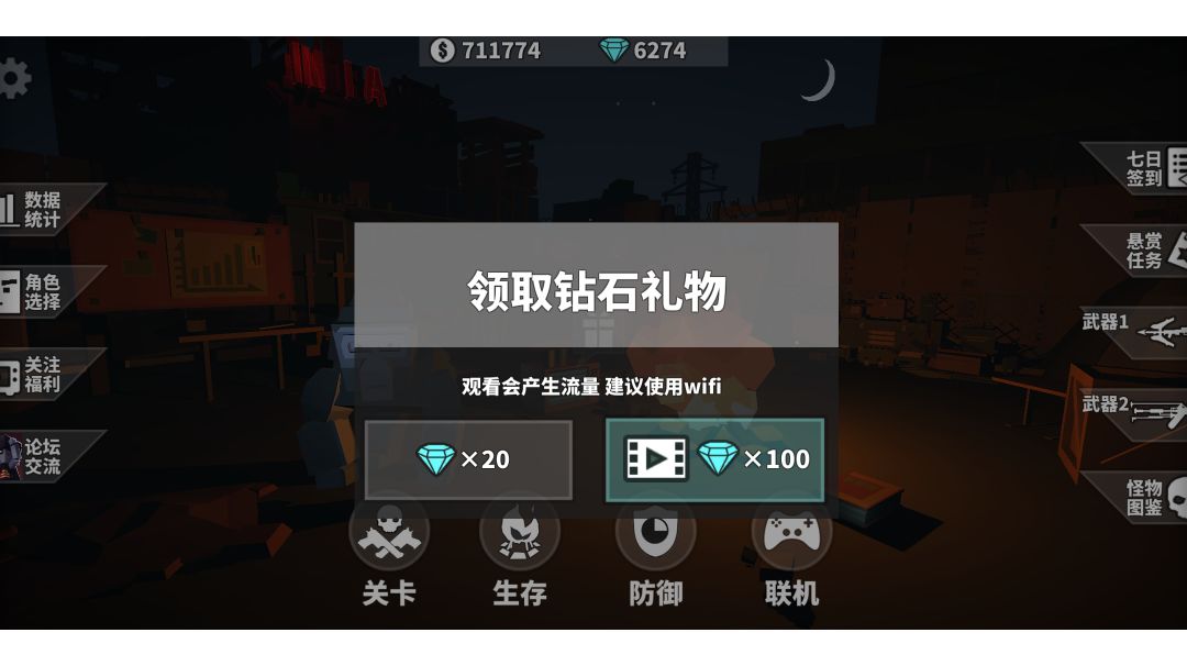 游戏好玩是好玩就是比较伤肝,安卓反正是没有氪金的地方,我也不会告诉你我看了150次广告 肝了4天 该有都有了人物角色枪支,该通关的所有的也都通关了。这里为大家提供一种通关的思路。 第一天攒2500钻石把基础的人物塔塔(500)+m16(2000)搞到手,这是初期最性价比的组合了 第二天领取系统赠送武器ak47 跟 m16 搭配使用,这样你基本就可以通关居民区250 领取吸血鬼了 ,有了吸血鬼之后,