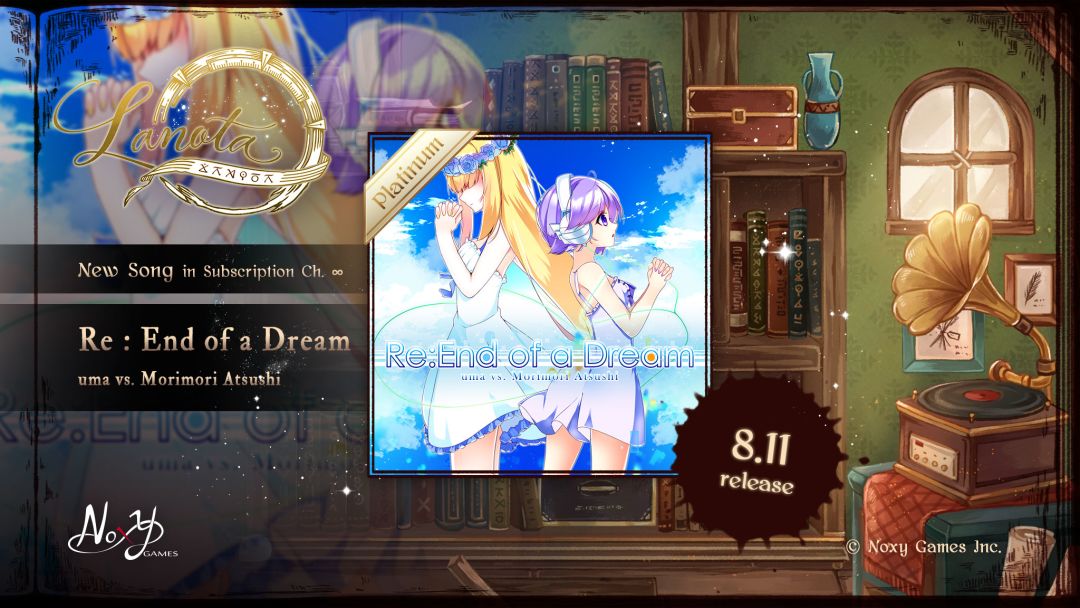 新曲「Re:End of a Dream / uma vs. Morimori Atsushi」于今日推出! -- A new song "Re:End of a Dream / uma vs. Morimori Atsushi" will be available on Aug. 11th in Subscription Ch. ∞: Ritmo's Secret Library! 更多活动和信