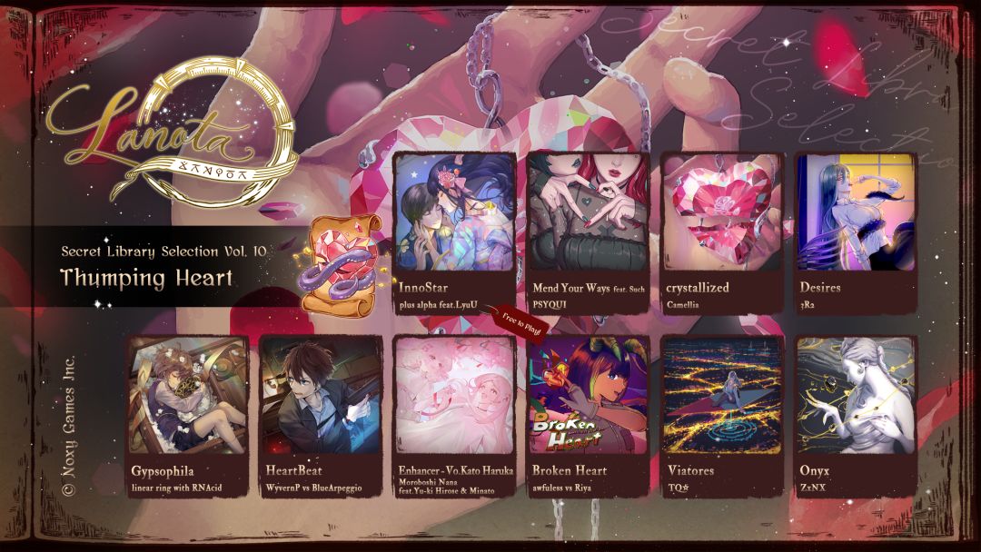 秘密书房精选辑第十部「怦然心动」将在4月20日Lanota 2.22更新推出! 收录乐曲: Viatores / TQ☆ Mend Your Ways feat. Such / PSYQUI Enhancer - Vo.Kato Haruka / Moroboshi Nana feat.Yu-ki Hirose & Minato crystallized / Camellia Gypsophila