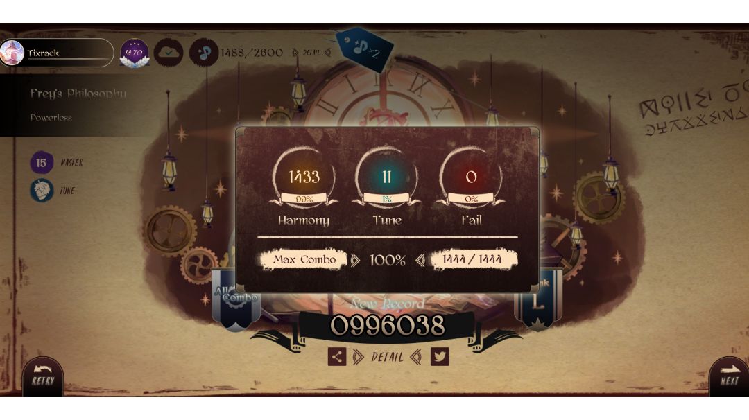 [第一章魔王曲][Lanota] Frey's Philosophy - Powerless (Master 15) All Combo ! 993k