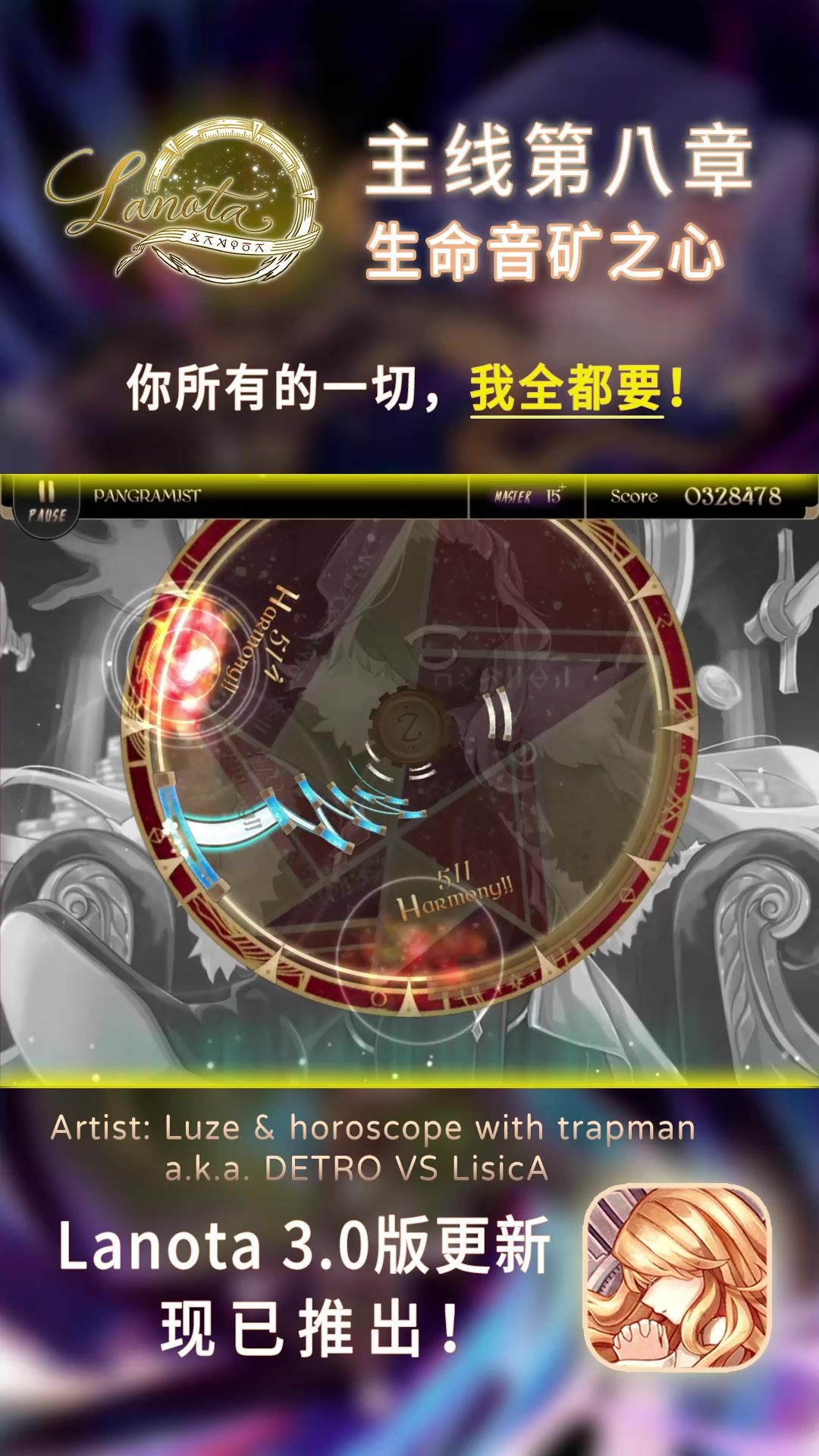 Lanota 3.0版:主线第八章「生命音矿之心」将于4月2日推出!