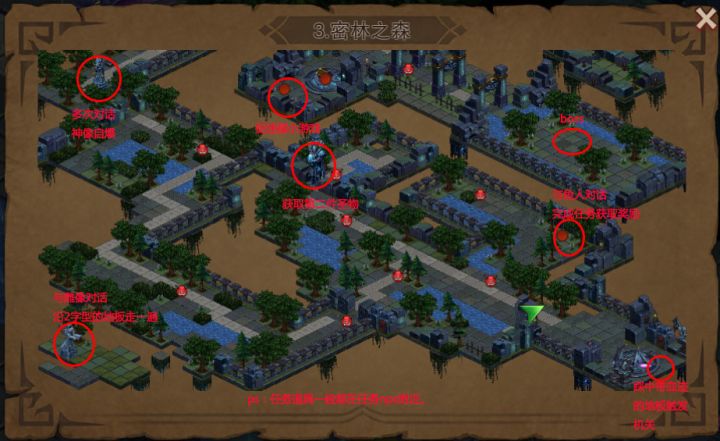 后两张为小鱼人 第五次隐藏位置 需要击杀本层boss 才可以走到这个位置 。砍树任务 : 在小鱼人右后方 有3颗树采花任务:只有任务npc附近的花可以采,不要乱跑。。。