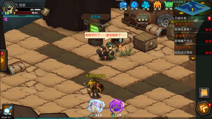 任务完成了,就是找不到人交任务无语了。还有就是现在的疲劳消耗太快伤不起,打一个怪张1-2点疲劳,boss涨得更多回复起来呢几个小时过去了降了十几点,搞笑呢吧还有就是其他的不说了自己看着办吧。这次是测试应该开放点。多多给玩家福利。