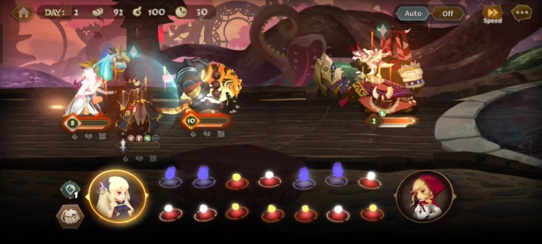 本攻略低配指只用普角不用SP角色,不带二阶专属,尽量不用技能书角色。 工坊技巧: 1.双符文:工坊里左上角可以存入一枚符文,下一把开局右边四枚有刷出需要的符文可以把之前的取出来,没有就点结算重开(注意别点放弃),这样开局身上就可以SL出两枚想要的符文。 2.若主C为白位或金位可以在打完一阶Boss后,二阶BOSS前吃一块磨刀石,这样白位和金位也有磨刀石效果。 3.先把三条路线各走一遍打完一阶BOS