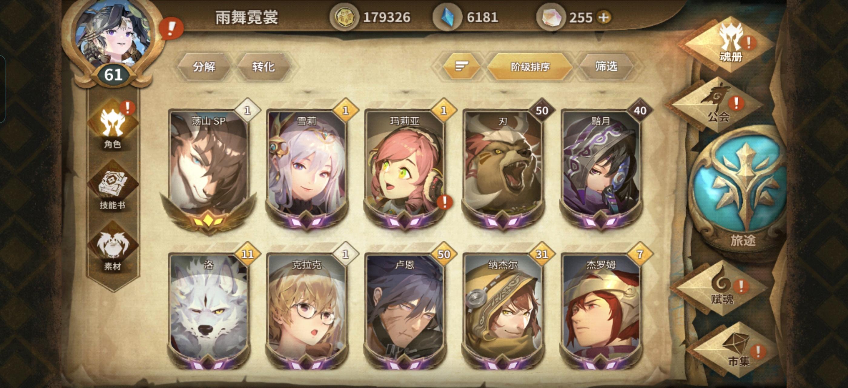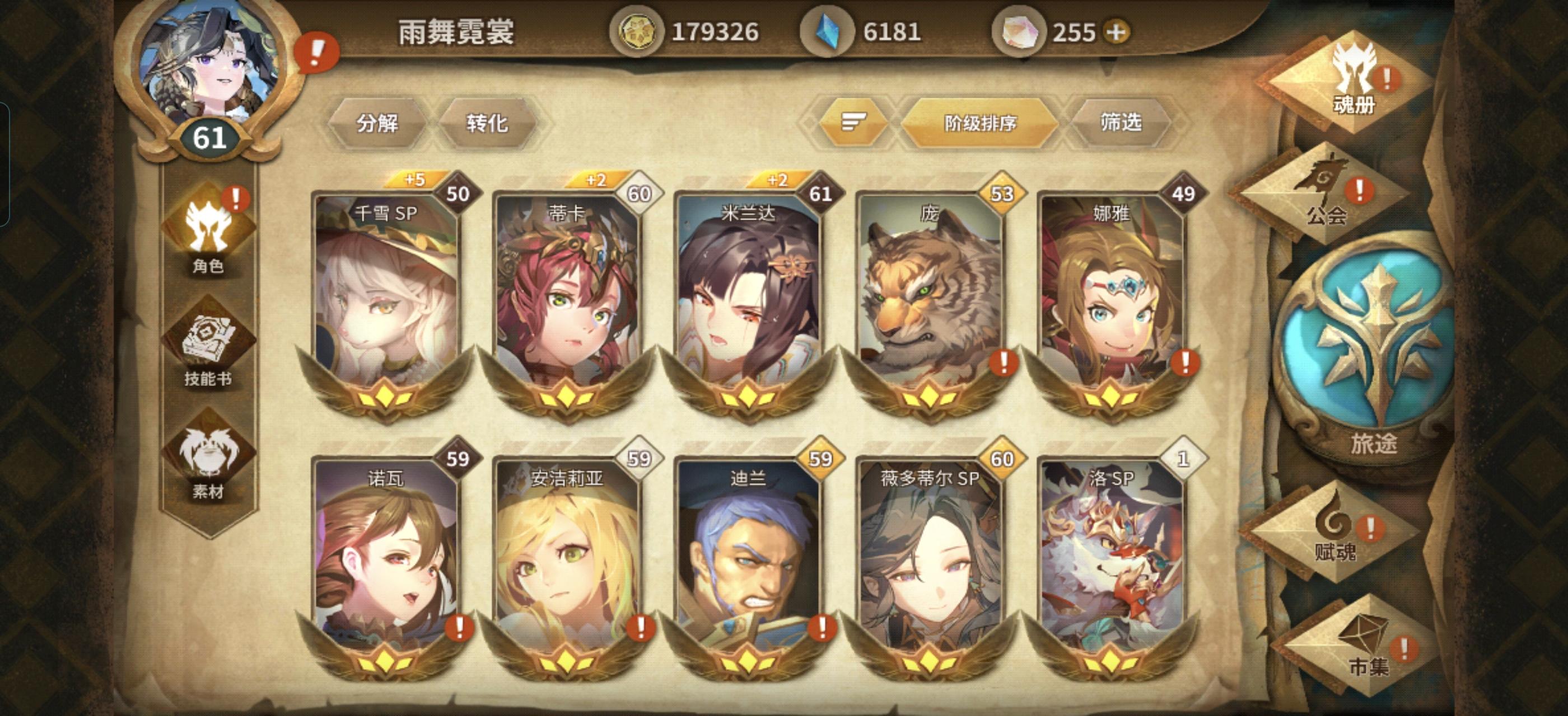 我看xp练卡的,前面抽到洛的时候还很开心,但是感觉有一点点弱,就没去拉他等级了。但是尧尧公主我抽到直接拉到152了,我觉得尧尧公主的数值很美,这次工坊我就是用尧打过了,也可能是塔季兰黛太菜了,尧尧公主我好像一个4消(带4撕裂的魂芯)就能打出将近10万的伤害了。其他的我就打不过了,其他的太强了。感觉没什么特别好的配队,应该是我等级太低了吧,也是看了很多攻略,感觉我缺很多角色,我想围绕着兽人角色来组队