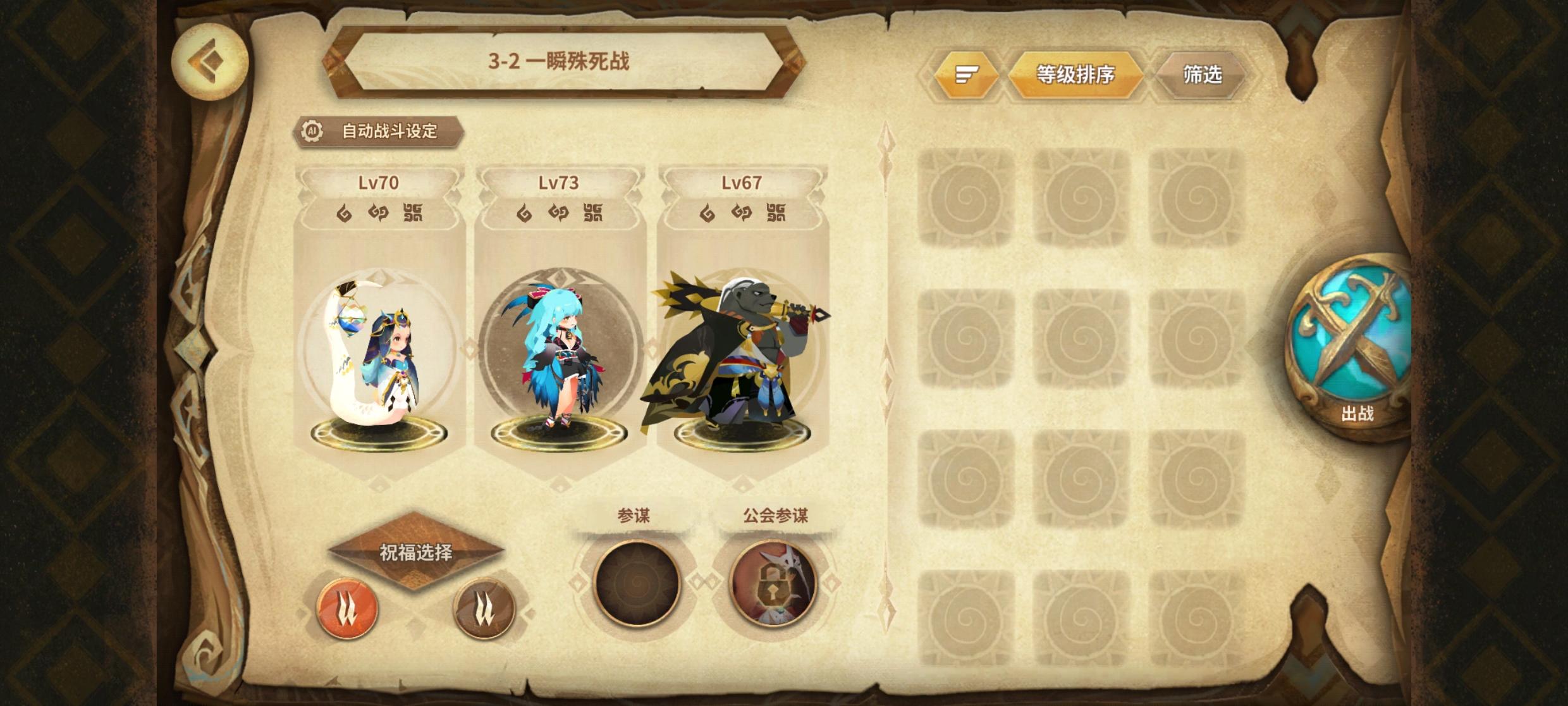 1普通,2+2祝福。找个aoe角色,无脑祝福四魂循环2普通,达成制能过就行3普通,2+2祝福。老蛇加单体。金位输出参谋豹女,白位输出参谋雪尔森。无脑箱子四魂循环4普通,2+2祝福。金位单体输出就在,白位有四魂就行。黑位固定熊二,队友阵亡一次固定四魂。开局黑四,第二面金四,自动第三面,第四面白四给输出祝福5普通,2+2祝福。诺瓦卢恩,自动过6传奇,2+2祝福。公主无限白二,没白魂用箱子7