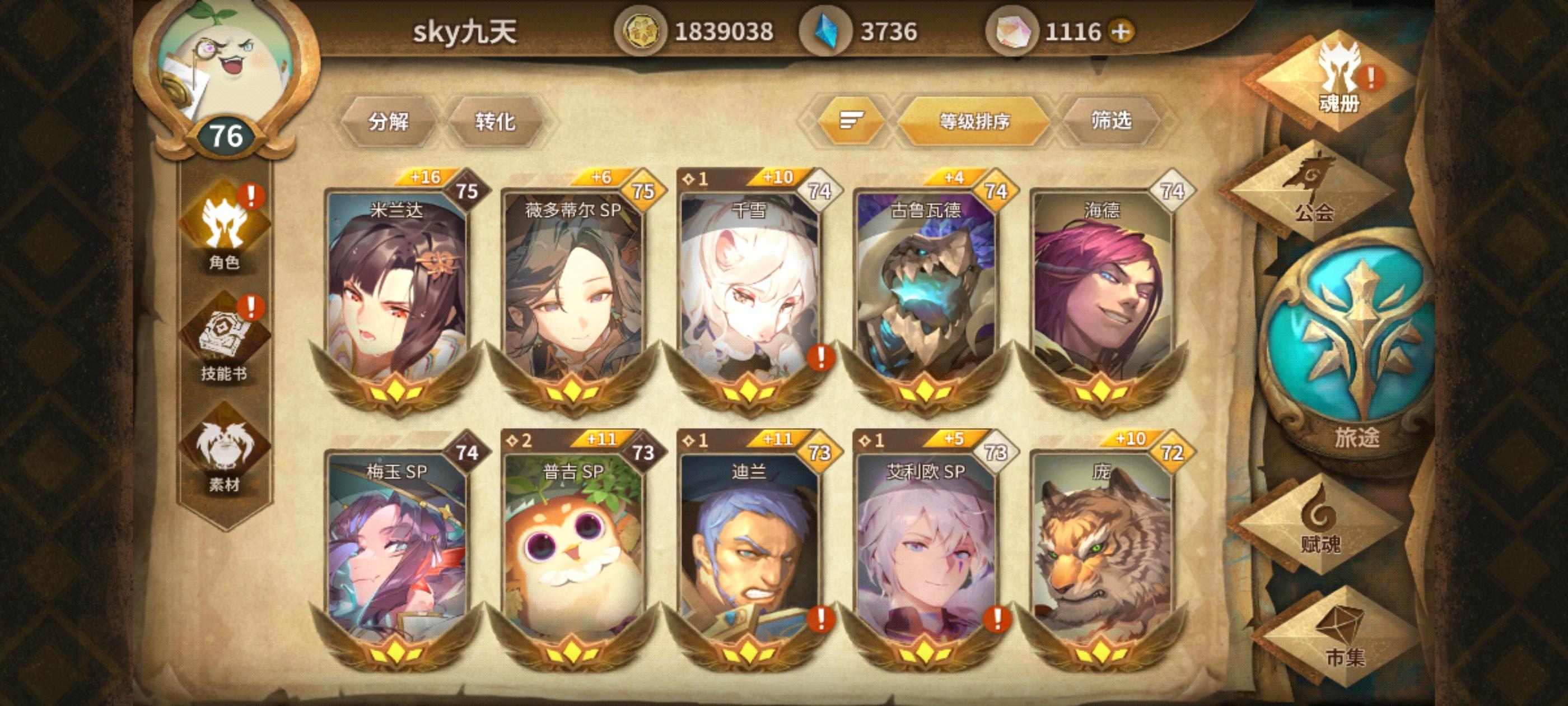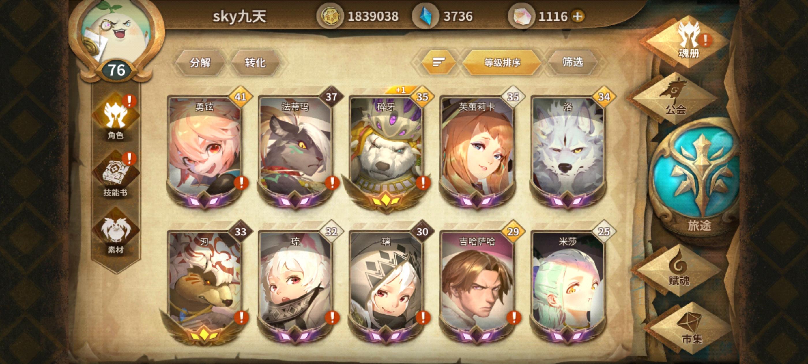 我看xp练卡的,前面抽到洛的时候还很开心,但是感觉有一点点弱,就没去拉他等级了。但是尧尧公主我抽到直接拉到152了,我觉得尧尧公主的数值很美,这次工坊我就是用尧打过了,也可能是塔季兰黛太菜了,尧尧公主我好像一个4消(带4撕裂的魂芯)就能打出将近10万的伤害了。其他的我就打不过了,其他的太强了。感觉没什么特别好的配队,应该是我等级太低了吧,也是看了很多攻略,感觉我缺很多角色,我想围绕着兽人角色来组队