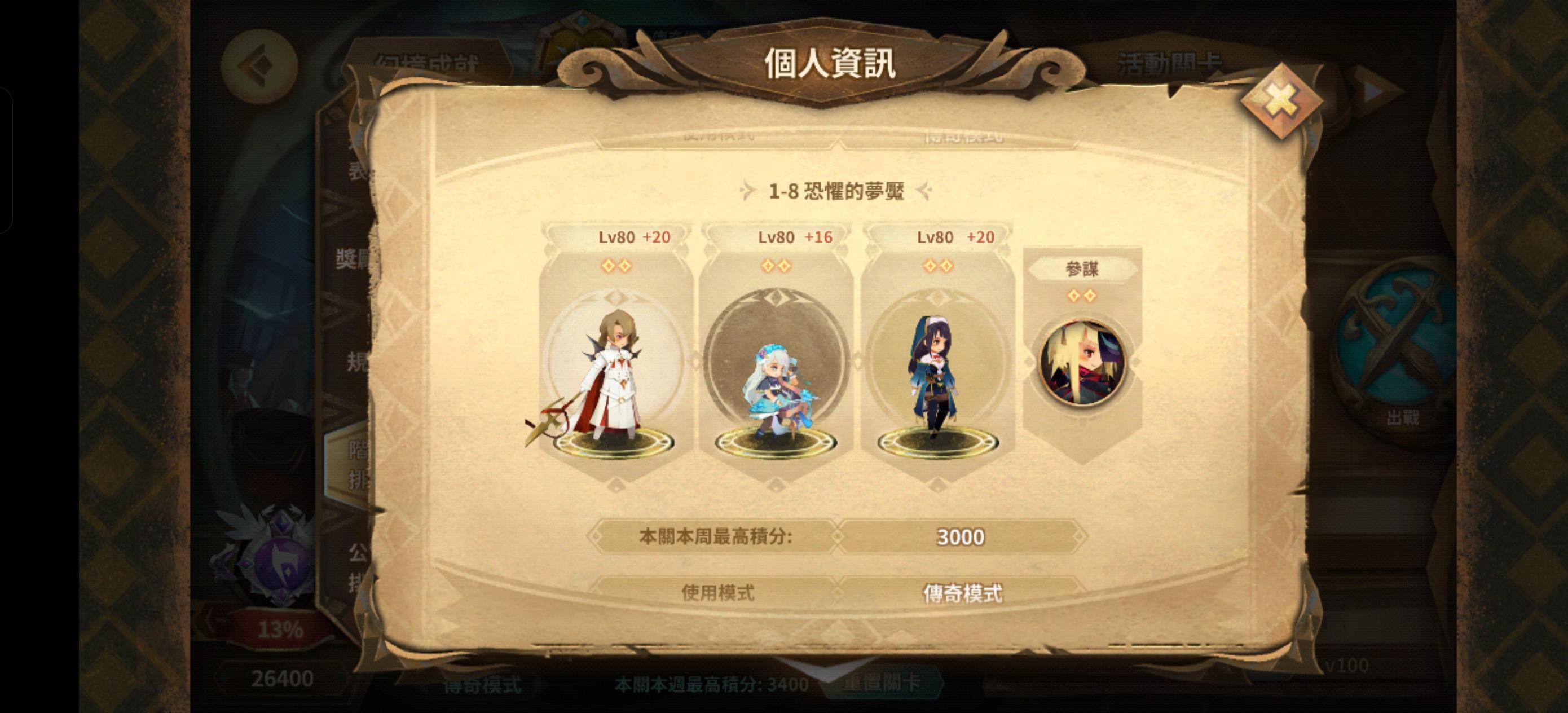 1普通,2+2箱子。熊大加参谋卢恩,有箱子直接用,第三面补一个金二,第四面直接金四2普通,达成制能过就行3普通,2+2箱子。诺瓦加雪尔森。如果没有攻击末位角色把雪尔森换成全员动一白位带奶4精英,2+2箱子。尧尧公主加参谋豹女。箱子有就用,无限黑四5普通,2+2箱子。熊二就行可以带个参谋。箱子有就用无限黑四没有就黑二6传奇,普吉时停7传奇,2+2箱子。公主和一个10回合收菜的角色。无限白