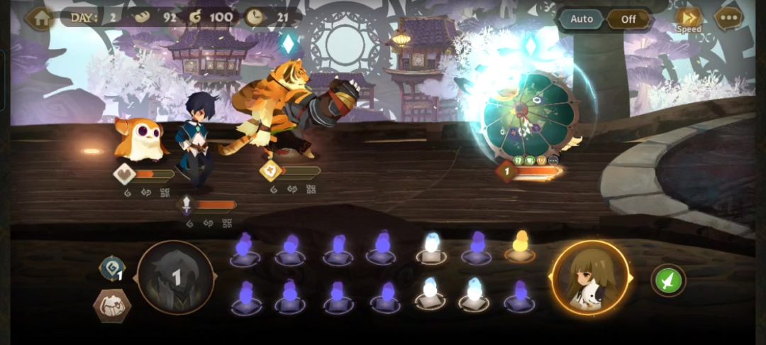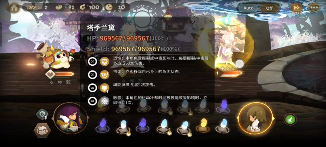 《Sdorica 万象物语》庞DR ── 既是为了帮助族人,在下义不容辞! 🔸一魂技能「伏恶怒咆」 守护族人的安宁, 移除同伴身上的所有负面状态并赋予自身,效力为1回合1层,并赋予自身2回合强化与2回合战意。 【强化】:每层强化提升本角色30%的技能效果,最高3层。 【战意】:每层战意提升本角色30%的技能效果,最高3层,施展技能后增加1层。 🔸三魂技能「连环降妖斩」 守护族人的安宁, 破甲攻击敌