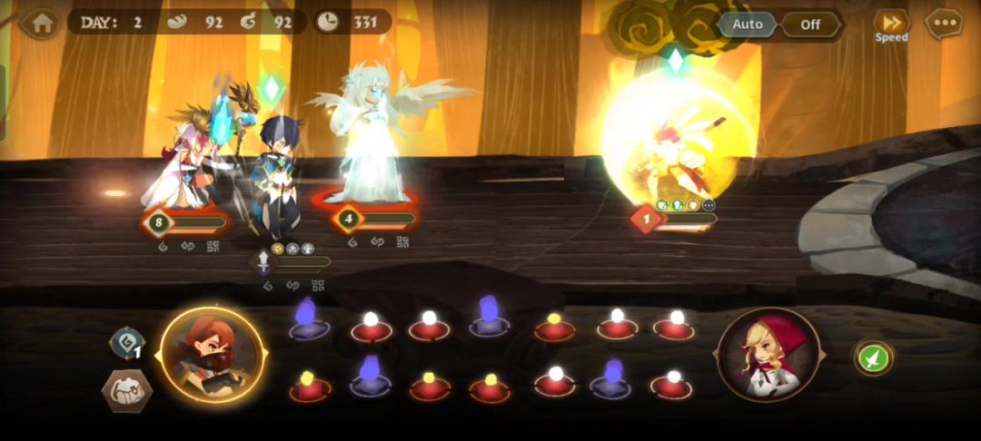 (论工坊作业为啥要禁装备) 板甲触发的罚站不会连锁敏感还是太超模了(技能造成≠装备造成),但因对面每回合行动不触发敏感,导致也无法触发冷却回合为0的攻击,即无法一回合攻击希欧两次 贾汉:我们这里有一个内鬼[表情_生气] 行动顺序:在魂能屏障展开的回合丢三次金1 再金2/金4砍破魂能屏障,并继续攻击到下次魂能屏障展开 展开后再继续丢金1×3 通过此顺序可以盖掉一次魂能屏障展开,使其希欧的输出回合,魂