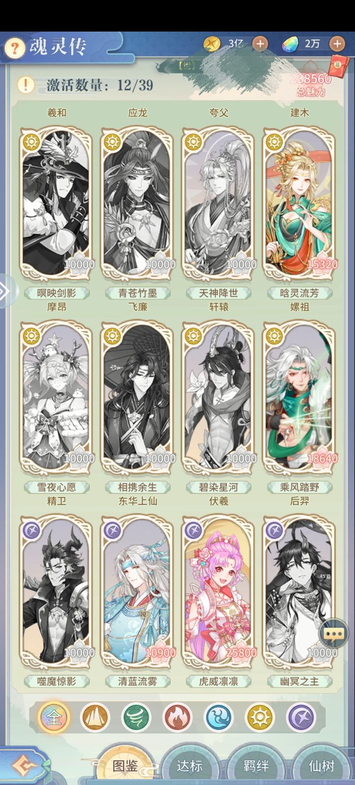 角色及养成:大部分角色都挺好看,为小凤凰爆灯!第三张是我box,可以看到有属性和稀有度之分,究极将灵好像都很强大吧,而且都是阴阳属性,获取难度和升星难度大。升星不同阶级所需要的材料不同,反正基本就是需要同属性狗粮和本体,最高是升到14星。随着等级提升,耗费的材料也很多,拉长了养成周期。然后究极将灵比普通的多了一个天赋就是“资质”(其实没注意其他究极有没有),反正加数值了应该是。