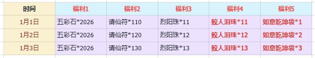 辞旧岁,迎新年,感谢仙君大人们一路以来的支持与陪伴!为了庆祝元旦,我们特别推出2026元旦活动!🐎元旦福利,登录可领🐎活动时间:2026年1月1日00:00-2026年1月3日23:59活动内容:上线即可领取,福利邮件直达。注意事项:*以上福利均通过邮件发放,时间有限,过时不侯。*节日期间如遇特殊情况,福利邮件可能会有所延迟,但虽迟必到,还请各位仙君理解。🐎元旦返利🐎活动模式:全周