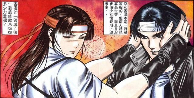 就在港漫《拳皇96》里,草薙京居然在剧情里出现了另一个女朋友—藤堂香澄!漫画中,在京和暴风的大战中京用尽了力量。而香澄为了让京恢复体力,与他交合渡气。两人最终陷入爱河,草薙京也承认了藤堂香澄,两人拥吻在一起~然而最狗血的来了,八神也看上了草薙京的女友香橙。在草薙京失去力量的时候趁虚而入,将香橙制住强吻,甚至最终香橙是被暴走的八神间接给杀死了_(¦3」∠)_不过港漫毕竟也不能算作是官方了,但是