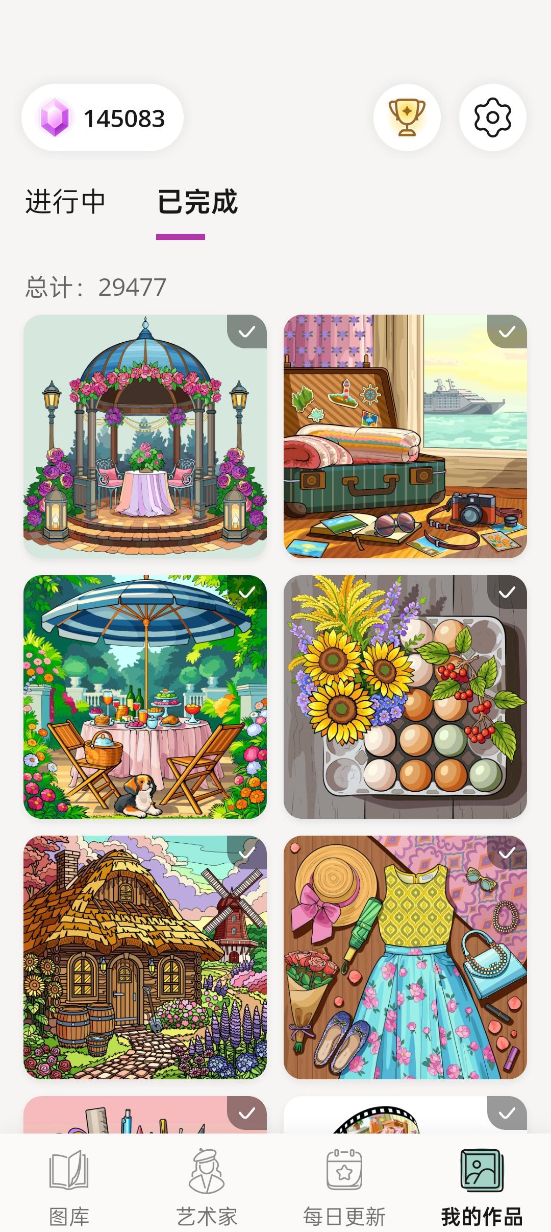 这个游戏玩了好久,每晚躺床上睡前打开番茄边听小说边玩,特别惬意,每晚涂几张图已经成习惯了,现在突然没有了,感觉少了些什么好难过。