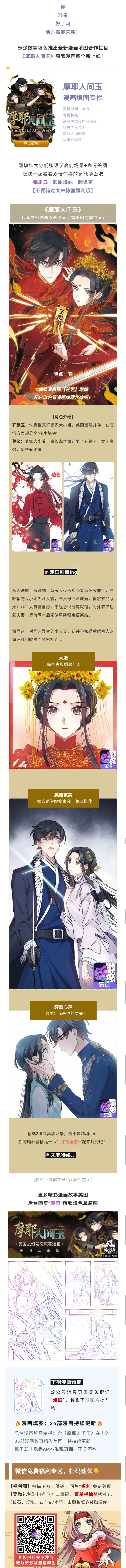 💕乐涂全新漫画合作栏目>>正式上线! 民国玄幻爱恋原著漫画《摩耶人间玉》,每周五更新8张最新剧情填涂