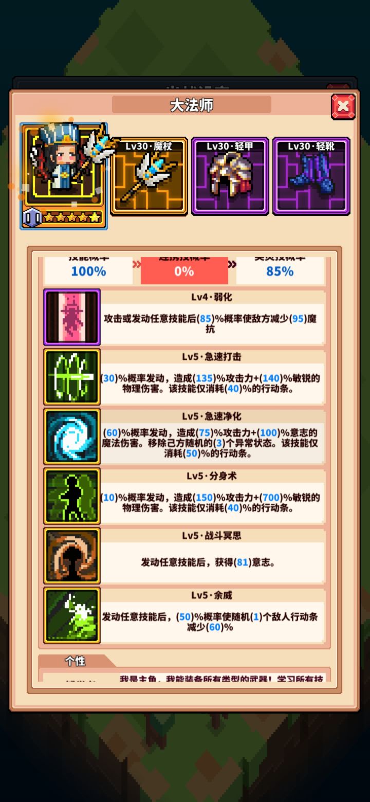 配2大法4小法2减条狂战2战巫2减抗贤者以下盗图谢谢主角打BOSS可以下余威上其他被动大法师法师贤者战巫狂战