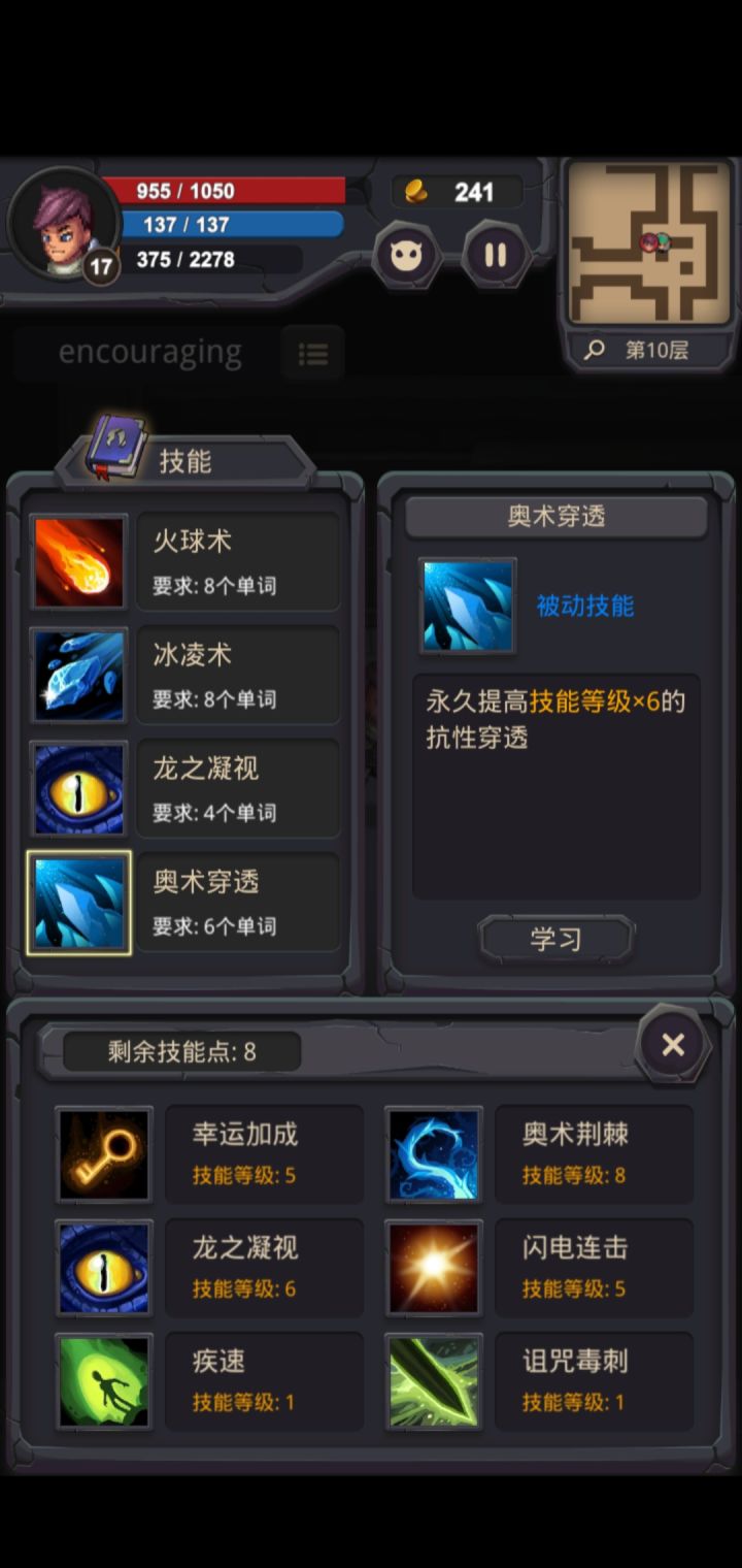~~~~~~~~地上的长信~~~~~~~~~~~~~~16层20级进度~~~~~~~前面没玩懂,不会加技能点,来来回回把前10层刷了几遍。另外,左手指环位不能解锁,需要联网看广告,希望开发者大大能更新解决。向你们的辛勤付出致敬!