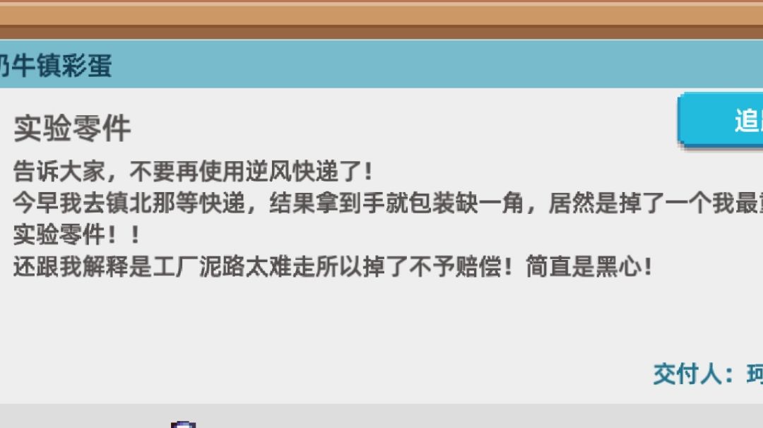 小镇开发计划 小巧的帽子 小巧的日记本 道具拓印的纸在背包里面,可以送礼物一样给花菇 去山洞打怪完成任务,粘液怪要打死后用炸弹炸(在三十八层以后),攻击不够可以给乔乔送糖,七级会给武器,然后跟着任务走就能完成了 见习邮递员 第一个线索去神秘的海滩触发,过完剧情后找三个东西,分别在海滩,东山岳,温泉门前 然后让你送信,鸡毛信是阿布的,阿布看信后要的东西,后面按要求走就行,不同选择应该要求不一样,我不