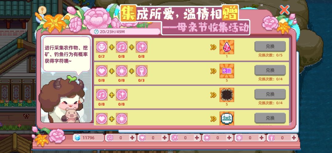 《集成所爱温情相赠》 一年一度的母亲节是否送给自己的母亲一份礼物了呢? 一束康乃馨有时代表不了母爱,心中的爱才是真正的爱~ 呃,有点跑题了。。。 本次活动甚至说比劳动节活动还不错 通过劳动获得音符 🎶 用来兑换奖品 总的来说,兑换条件比较苛刻~ 大家加油肝 如果实在差一个或者差几个音符的话 也可以选择用钻石购买(亏的一匹) 本次活动力度非常的大 可以总共可换五个奇遇水晶 20发钻石夺宝 20块土地