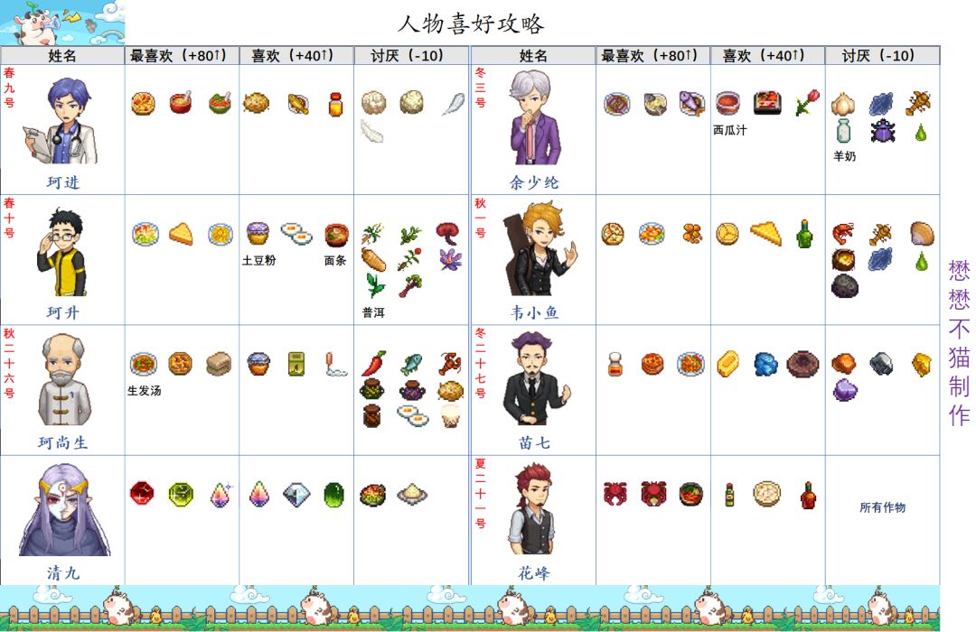 奶牛镇新版人物信息-喜好-行程攻略