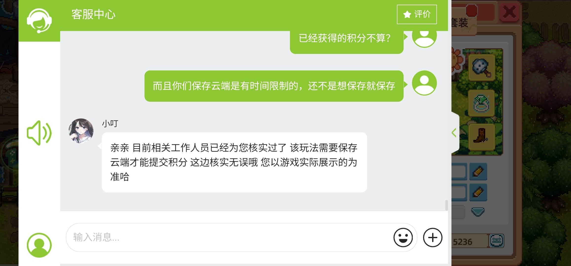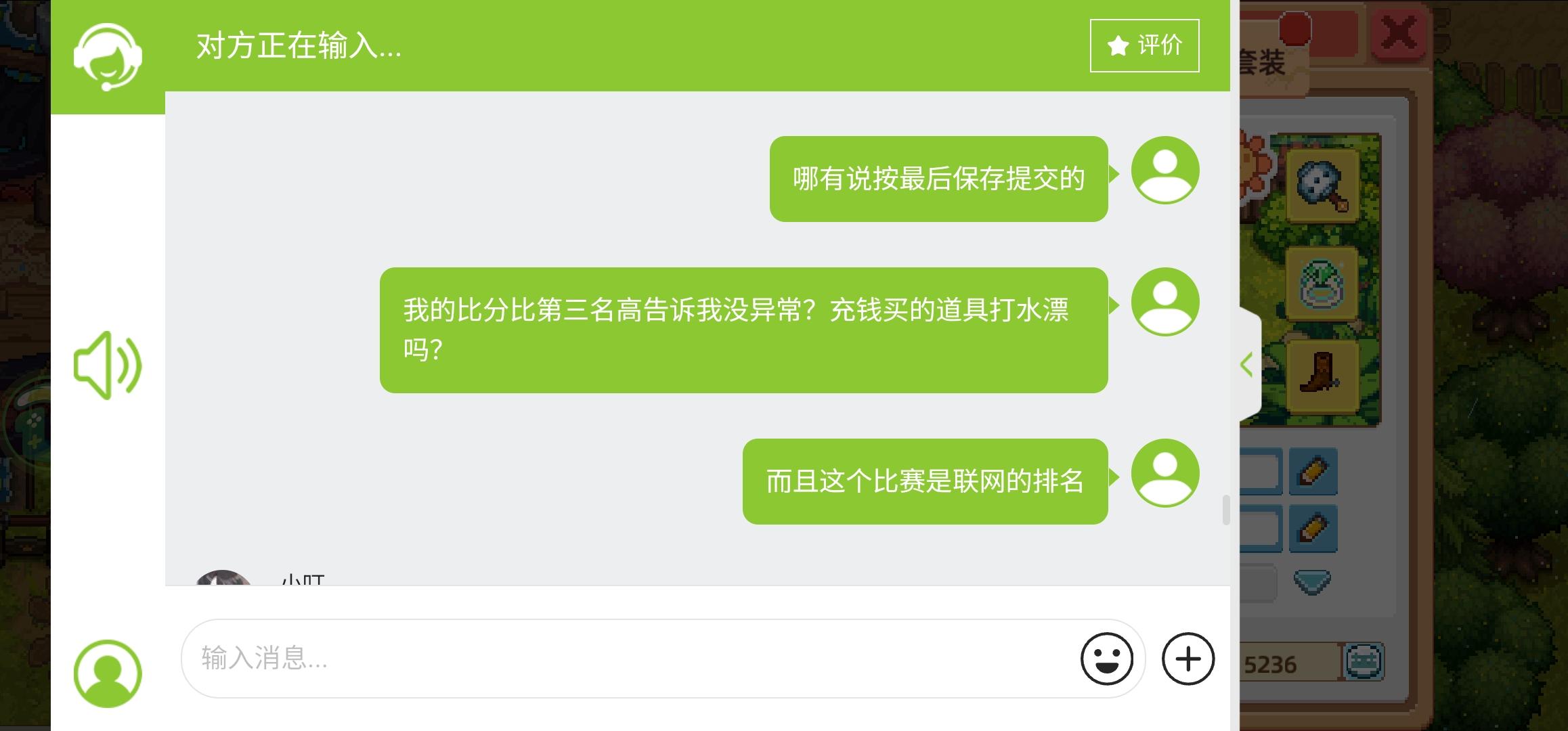这么明显的bug,说是正常,钓鱼比赛获得的积分要手动保存才算,不知道这种不公开不透明的游戏,侵吞了多少玩家花钱买的道具换来的积分。分数排第三,说我没有手动保存云端所以积分都不算,而且这个是正常的。道具退钱,道具退钱,道具退钱!